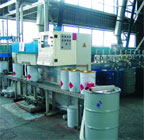 Оборудование для смешения красок флексографской и глубокой печати представляет собой установку с несколькими ёмкостями для базовых ингредиентов. Их количество зависит от потребностей типографии (12–48), оптимально — 12–15 компонентов, сами производители красок обычно используют больше.