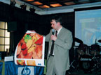 О расходных материалах и носителях для широкоформатной печати рассказал Александр Винокуров, представитель отдела расходных материалов для широкоформатных принтеров HP. Он отметил значительный среднегодовой рост продаж в данном сегменте и продемонстрировал образцы изображений, полученных на разных материалах HP. Среди них – отпечатанные стойкими к УФ чернилами на холсте, гарантирующими хранение изображений в течение 150 лет.