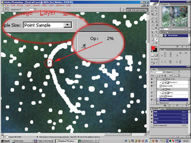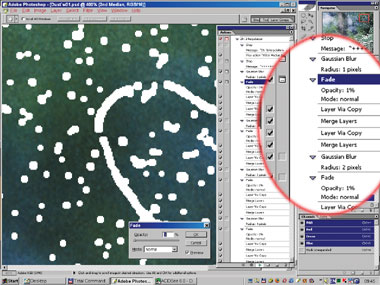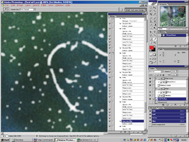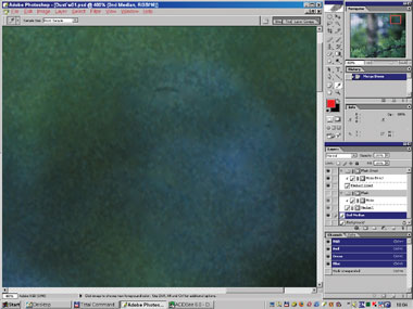 Теперь займёмся «одеванием» тех мест в картинке, где только что проделали множественную «трепанацию». Здесь пригодится замечательно удобное свойство параметра Opacity создавать различные весовые соотношения при усреднении нескольких изображений. Всё просто: допустим, вы хотите усреднить два слоя, но не среднеарифметически, а с относительными весами 1 и 2. Можно расположить их один над другим, задать предельно малые Opacity (1% и 2%; возможно, и сотые доли процента – на досуге подумайте, как), слить вместе и многократным повторением операций дублирования и слияния довести плотность слоя до 100%. Операции выполняются в Photoshop быстро. И будет вам счастье – получите нужное среднее.