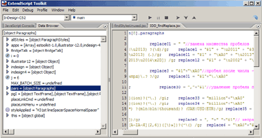 | ExtendScript Editor — удобный инструмент поиска проблемных участков кода |