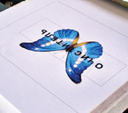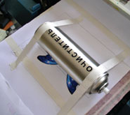 С точки зрения компьютера, BigJet 3000 ничем не отличается от обычного струйного принтера. Проблема поджидает в начале печати… Объект нужно закрепить на столе подачи. Очевидное решение (положить на стол) подходит только для плоских и тяжёлых предметов (металлический или стеклянный лист, керамическая плитка и т. д.). В остальных случаях (зажигалки, авторучки, брелки и т. д.) придётся проявить изобретательность. Хорошими помощниками станут рулончики одно- и двустороннего скотча. Но предмет нужно не просто закрепить, он должен находиться в нужном месте. Специалисты «РуссКом» предлагают простое решение: вначале изображение печатаем на листе бумаги, закреплённом на столе, после чего расположение запечатываемых предметов становится очевидным. Для экономии времени и чернил печатать можно не всё изображение, а только контур.