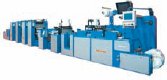 Работающая в ротационном/полуротационном режимах сервоприводная машина включает секции флексографской и трафаретной печати, горячего и холодного тиснения, макс. производительность 150 м/мин, ширина печати 420 мм.