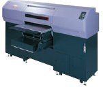 УФ-принтер с прямой передачей данных от компьютера на печатающие головки, возможность установки до 48-ми печатающих головок Konica-Minolta, ленточная система подачи материала с вакуумным прижимом для печати изображений стык в стык на материалах толщиной до 20 см и весом до 100 кг.