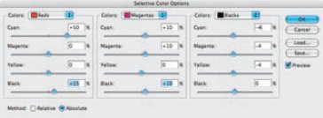 Последний штрих — корректируем цветовой тон шоколада и сиреневой бумаги. Мой рецепт шоколада в CMYK — 25C, 75M, 90Y, 60K. Создаём Adjustment Layer Selective Color, но не в группе Chocolate Separation, а над ней — мы уже работаем со всей фотографией, а не только с шоколадом. Убираем излишнюю красноту из шоколада, делаем цвет бумаги насыщеннее и глубже, чуть-чуть осветляем тени, чтобы не выходить за пределы суммы 300%.