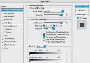 Создаём группу слоёв Choco Separation и в ней два белых слоя — CMY и Black. В панели Blending Options (двойной щелчок на значке слоя в панели Layers) у слоя CMY отключаем Black, а у слоя Black — все остальные каналы.