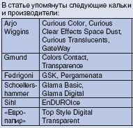 «В конце прошлого года в нашем ассортименте появились полупрозрачные чистоцеллюлозные классические белые кальки Glama Basic (Schoellershammer, Германия). Эта небольшая фабрика существует с 1784 г. и знаменита на весь мир, в первую очередь, своими кальками. Glama Basic отбеливаются без добавления хлора, не содержат кислот и обладают высокой устойчивостью к старению. Допускают высокую и офсетную печать, при этом следует использовать исключительно фолиевые либо УФ-отверждаемые краски. Glama Basic подходят для большинства методов послепечатной обработки: шелкографии, лакировки, ламинирования, конгрева, вырубки, лазерной высечки, горячего тиснения фольгой, биговки и фальцовки. Они дружны с офисной техникой: струйными и лазерными принтерами. В нашем ассортименте есть и интересные цветные кальки: Curious Color с перламутровым нанесением и кальки с различными эффектами Curious Clear Effeсts Space Dust “звёздная пыль” (Arjo Wiggins)». — Елена Березина, «Александр Браун»