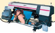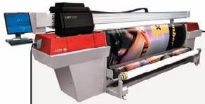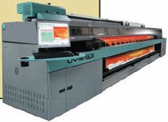 Рулонный УФ-принтер Fujifilm Uvistar. Модифицированная версия печатает до 353 м2/ч, ширина печати 3,5 или 5 м; печать на широком спектре поверхностей (включая жёсткие материалы), мультирулонная (до 3-х рулонов), каплями большого и маленького размера за один проход; прецизионное позиционирование капли на материале и контроль температуры чернил в режиме реального времени.