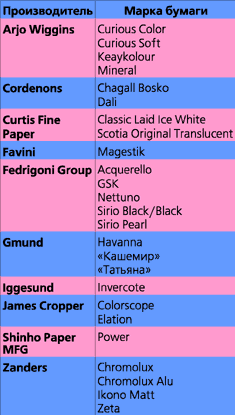 | Марки бумаги и производители |