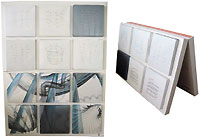 Немецкий производитель бумаг Zanders разместил календарь-2004 на бумаге из коллекций Chromolux, Zeta и Ikono Matt (250–300 г/м╡). Календарные месяцы — запечатанные офсетом со всех сторон коробки-параллелепипеды с квадратным основанием, которые сначала необходимо сложить, а затем вставить в своеобразный картонный стеллаж |