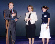 | Владелец фабрики Gmund Флориан Колер вручает генеральному директору ГК «Регент» Анастасии Высоткиной сертификат «Заказчик года». Справа — менеджер по дизайнерским бумагам ГК «Регент» Елена Березина |
