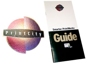 | Путеводитель по выставке IPEX-2006: логотип PrintCity выполнен с использованием пигментов Merck, слово «Guide» — холодным тиснением |