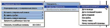 | Кроме колонтитулов, можно автоматически размещать в тексте даты, имя файла и пр. |