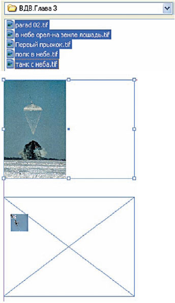 Итак: есть несколько фреймов, выберем «Файл > Поместить Ctrl+D», откроем каталог и выделим группу файлов. Рядом с курсором появляется миниатюра первого файла, готового к размещению в фрейме, а в скобках количество файлов в очереди. Стрелками на клавиатуре можно выбрать файл, который будет сейчас размещён. Отображение миниатюры очередной картинки отключается ячейкой в «Установках» на закладке «Интерфейс», секция «Курсор размещения».