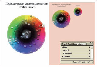 Пиктограммы всех программ пакета CS3 стали похожи на знаки химических элементов. Дизайнеры Adobe не только сделали стильные значки, дали им двухбуквенные сокращения, но и подобрали каждой программе свой цвет. В интернет-публикации о дизайне нового пакета была интересная картинка, где значки программ помещены в пространство цветового круга. А дизайнеры в творческом процессе называли картинку периодической таблицей элементов…