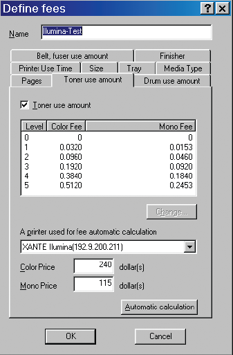 Для большинства пользователей важен вопрос стоимости печати. Но ведь две трети затрат на расходные материалы приходится на тонер (и даже больше у Kyocera, в котором ресурс барабанов и девелопера 300 тыс. отт.), а его расход варьируется в зависимости от изображений. Только для Xerox Phaser можно ответить относительно точно, хотя и после печати изображения: в развитой системе отчётов есть и информация о расходе тонера на конкретное задание — в процентах от ёмкости картриджа. С помощью интересной утилиты, предлагаемой Oki и Xante, можно учесть стоимость не только всех расходных материалов, но и разных типов бумаги и даже времени работы принтера. К сожалению, расход тонера учитывается приблизительно: все задания делятся на 5 групп в зависимости от расхода тонера, причём в каждом он считается одинаковым.