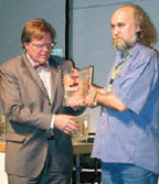 Василий Смелянский («РИГ Персона») получает золотую награду FESPA Awards-2007 из рук президента FESPA Хельмута Фрая