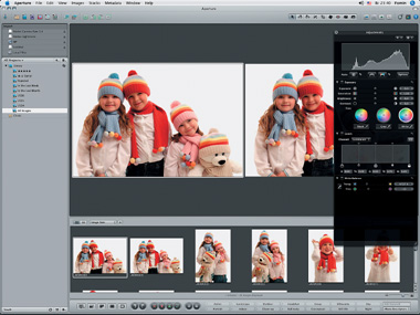 Гораздо более мощный инструмент, чем менеджер файлов, предназначен профессиональным фотографам и вобрал функции по созданию и ведению базы изображений на компьютере с поддержкой коррекции, архивирования и синхронизации архивов. Aperture фокусируется на рабочем цикле в целом. Цель Apple – улучшить весь процесс обработки отснятых фото.