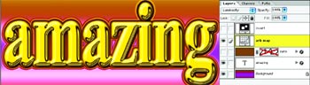 Шаг 8. Публика в недоумении чешет затылки, не сомневаясь в одном: после всех трюков и обработок шрифт уже точно растровый и редактированию не поддаётся. А я тянусь к следующему инструменту, выделяю слово amazing и ввожу с клавиатуры новое — буквы меняются. Я сделал невозможное — отредактировал слово, сохранив растровый эффект. С задних рядов слышатся крики: «Шаманство!» Часть аудитории, включая бывшего пещерного человека, зажигает факелы и заводит угрожающие песнопения.