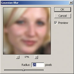 - Радиус фильтрации выбираем так, чтобы исчезли не только мелкие дефекты, но и очертания лица в целом смягчились и выглядели округлыми. Здесь радиус составил 25 единиц (рис. 6).
