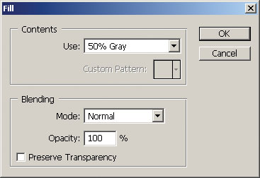 - Заливаем слой нейтрально серым цветом командой Edit Б─╒ Fill и выбираем цвет заливки 50% Gray (рис. 9).