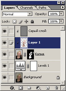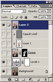 Рис. 14. Выделен слой, маска загружена как выделение - Копируем на новый слой содержимое выделения командой Layer Б─╒ New Б─╒ Layer via Copy.