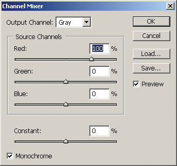 Вызываем команду Image Б─╒ Adjust Б─╒ Channel Mixer.