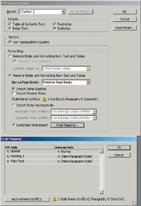 Вёрстка начинается с ввода подготовленного текста. От того, насколько просто можно сохранить стилевую разметку текстовых файлов, зависит удобство работы над изданием. В новой версии перечень параметров, которыми можно управлять при импорте, значительно расширен. Обратите внимание на назначение соответствия стилей (рис. 1). Параметры импорта текста сохраняются также в виде отдельных настроек.