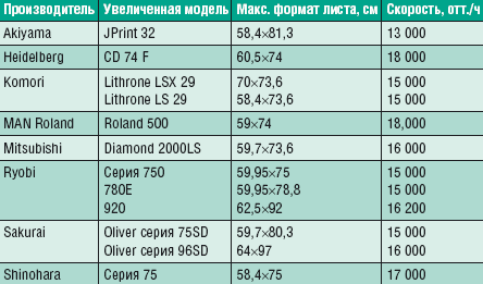 Спрос стимулирует желание пропустить через машину больше заказов, оперативнее выпускать короткие тиражи (в т. ч. поступающие в типографии через веб-порталы). Ждать компоновки полноформатного листа они не могут. Проще работать с машинами меньшего формата, запуская срочный тираж, даже если лист не заполнен (см. таблицу).