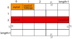 В приведённом примере происходит слияние всех ячеек между ячейкой myCell и последней.