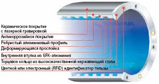 В составе анилоксовой гильзы — алюминиевая основа, на которую наносится гравируемое лазером керамическое покрытие. Конструкция монтируется на ведущий пневмовал при давлении воздуха 4,5 атм.