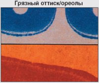 | Ореол только по краям основного изобра- жения: а) избыточный печатный натиск; б) избыточное давление между анилоксовым цилиндром и печатной формой |