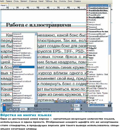Наконец-то разработчики расстались с практикой делать одно- и многоязычные (Passport) версии программы. Известные из «кварковских» форумов случаи, когда текст, свёрстанный в Германии, перевёрстывался, когда макет открывали во Франции, канули в лету. Теперь будут два варианта пакета: обычный, с поддержкой основных европейских языков (в т. ч. русского), и версия Plus, в которой поддерживаются такие особенности азиатской шрифтовой культуры, как написание текста справа налево, варианты японских иероглифов и др. Порадует документация: PDF-файл «Руководство по QuarkXPress 8» на русском языке объёмом 461 стр. К сожалению, там нет перекрёстных ссылок и индексного указателя, одного же оглавления явно недостаточно. А ведь сам пакет давно имеет инструменты для их создания: «Руководство» могло стать не только учебником, но и примером создания справочного механизма.В версии для Mac OS пользователям доступен на экране полезнейший документ «750 советов» (опубликован в Publish с № 7, 2007 по № 1, 2008), правда, почему-то на английском языке. Надеемся, в очередном обновлении он появится на русском и на обеих платформах.