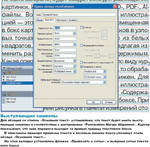 Каждый набор состоит из классов выступающих символов. Чтобы их редактировать, определять, какие в какой набор входят, или создавать свои наборы, выберите «Правка•Символы выступа…». Идея в том, что создаются отдельные наборы символов для правой и левой полос, которым можно выдвигаться за свой край полосы. И для каждого символа или их группы определяется степень выдвижения за край. Такой контроль исключит ситуацию, когда «буллиты» слева вываливаются за край полосы. Настройки выравнивания правого края назначаются отдельным абзацам. Буквица в них тоже будет обработана как выступающий символ.