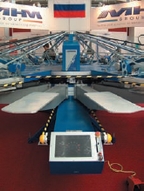 Прошедшая в конце июня XI международная выставка оборудования и технологических процессов в лёгкой промышленности «Инлегмаш» была ознаменована отнюдь не рядовым для российского рынка трафаретной печати событием. Заинтересованные специалисты знакомились на стенде «Дамко» с 11-красочной карусельной полуавтоматической трафаретной машиной для печати по текстилю MHM Synchroprint 4000 (формат печати 500×700 cм), оснащённой 14-ю рабочими столами, 3-мя промежуточными сушками, станцией флокирования и функцией автоматической приводки. Прямо со стенда машина отправилась в московскую «Студию Кармине», дабы составить компанию двум уже работающим здесь машинам известной австрийской фирмы. Как подчеркнул присутствовавший на стенде главный исполнительный директор MHM Карл Вексельбергер, это не первая поставленная в Россию машина класса «люкс»; вскоре последуют инсталляции аналогичных автоматических машин МНМ в Смоленске и Бобруйске. Суть автоматической приводки — точная фиксация встроенным компьютером положения первого печатного стола, при котором достигается совмещение меток на столе и печатной форме. Затем — мгновенная установка координат остальных, автоматически рассчитываемых системой управления и выставляемых с помощью независимых серводвигателей. Печатный зазор регулируется с центрального пульта управления; более точная локальная настройка — с пульта управления каждой печатной секции. — И. К.