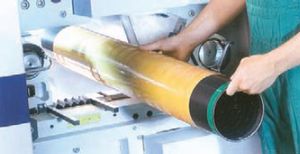ными фотополимерными рукавными материалами (например, от AKL (Stork) и DuPont), вообще отказываются от двусторонних монтажных лент — такие печатные формы непосредственно монтируются на промежуточные гильзы с компрессионным слоем. При установке на гильзу рукавная форма под давлением воздуха расширяется, а после его сброса надёжно на ней фиксируется, возвращаясь в исходное состояние. AKL предлагает гильзы-адаптеры Optiflex с тремя вариантами плотности вспененного слоя. Для прямой печати по гофрокартону нужны специальные вспененные ленты: они намного толще обычных компрессионных, позволяя работать с тонкими печатными формами; а в ряде материалов адгезионный слой предусмотрен лишь с одной стороны ленты. На Drupa-2008 Lohmann представила рассчитанную на высококачественную печать по гофрокартону серию вспененных лент DuploFlex CB: с односторонним адгезионным слоем и вообще без клеящего слоя (обе с различными вариантами толщины).