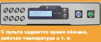 Рабочая температура и величина предварительного её превышения задаются с пульта управления. Температура зависит от марки клея — в нашем случае он требовал для работы 120°C, а превышение было установлено 40°C. Отметим, что при такой температуре вышеупомянутый режим энергосбережения бесполезен, а клей практически не окисляется (чуть-чуть пожелтел за час, который мы находились возле устройства) и не горит, — устройство работало без местной вытяжки, хотя в конструкции она предусмотрена.