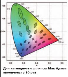 Серия опытов Мак Адама с целью выяснить пороги цветовых различий показала, что области визуально одинаковой цветности на графике XY имеют форму не окружностей, а эллипсов разного размера и наклона осей (названы в честь первооткрывателя). Когда для решения проблемы были предложены варианты преобразований координат CIE XY, выяснилось, что полностью избежать нелинейности модели невозможно. После долгих дискуссий в 1960 и 1974 гг. были проведены ревизии модели XYZ путём модификации переменных и утверждены две новые модели L*u*v* и L*a*b*. Параметр L (светлота) в обеих интерпретируется как показатель ощущения яркости (в отличие от коэффициента яркости Y, являющегося показателем энергетической яркости).