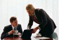 Оба файла переводим в Lab, а потом обратно в RGB, избавляемся от «лишних» профилей. В основном файле появился отличный запас для корректировки— больше трети тонового диапазона. При помощи кривых делаем тени контрастнее, немного осветляем четвертьтона и получаем вполне приличных людей за столом. За счёт полного исчезновения окна и деталей на отражениях.