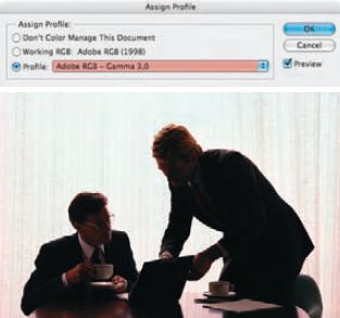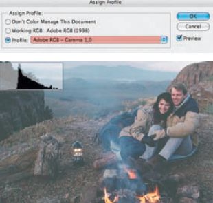 Возвращаемся в настройках Color Settings к основному рабочему пространству. Подбирать подходящую гамму для каждого фото теперь можно при помощи функции Assign Profile (в Adobe Photoshop CS3 — в пункте меню Edit).