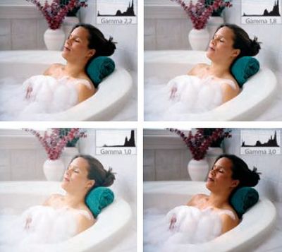 Согласно документации Adobe Photoshop, гамма — это яркость средних тонов (только не линейная, а логарифмическая). Чем меньше её значение, тем изображение светлее. В универсальных цветовых пространствах используется тёмная и контрастная гамма 2,2 (Adobe RGB (1998), sRGB, Wide Gamut RGB) либо более светлая — 1,8 (Apple RGB, ECI RGB).