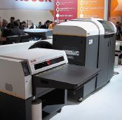 На стенде первой — 8-цветный планшетный The Hm1 Kiosk (макс. размер печати 540×320 мм, макс. разрешение 360×5760 dpi) от японской DTG Digital с функцией автоматического перемешивания белых чернил. Оснащённый интерфейсами USB 2.0 и IEEE 1394 (FireWire) аппарат предназначен для печати на твёрдых поверхностях и текстиле (хлопок и смесовые ткани). Закрепление водных пигментных чернил на тканевом материале — с помощью термопресса, при температуре 160 °С в течение 90 с.