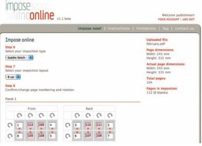 Множество простых инструментов ориентировано на офисных пользователей. Функциями спуска полос снабжены и пакет вёрстки, и иллюстративные — из них можно сразу печатать. А недавно появилось не лишённое оригинальности решение, выполняющее спуск полос… через интернет. Смысл прост: подготовленный файл засылается на сервер www.imposeоnline.com, а после задания необходимых настроек формируется готовый макет, доступный для скачивания.