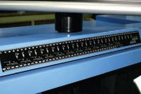 Основное отличие в управлении машиной — все настройки задаются с сенсорного пульта, а в памяти хранится 1000 программ. Вводить данные о новых заказах можно без остановки работы. В типографии пока не накопилась большая база заказов, повторяющихся ещё не было, но это дело времени.