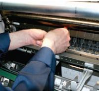 Обслуживать машину просто. Самая трудоёмкая часть подготовки к новому тиражу (по опыту ПИК ВИНИТИ, до получаса на самых сложных переналадках) — замена швейных иголок, все остальные настройки выполняются автоматически при задаче параметров блока: указывается длина корешка (120–510 мм), ширина страниц блока (80–320 мм), толщина одной тетради (до 4 мм).