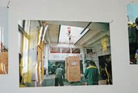 С историей проекта знакомила импровизированная фотовыставка. Например, ящики с деталями оказалось удобнее всего доставлять через разобранную часть крыши |