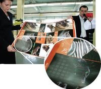 Презентация в «Академии печати» началась необычно — гостей собрали на втором этаже, сплошь заставленном видавшими виды листовыми машинами и послепечатным оборудованием. Никакого намёка на новую технику… Директор Юрий Пашков, как на броневик, взобрался на заслуженную SP76 и начал пламенную речь: «Когда основывали типографию в нелёгком 93-м, мы вынуждены были скупать старое, брошенное и изношенное оборудование… И, как дети, радовались первой выпущенной этикетке, коробке». В заключение короткой речи Пашков пригласил всех подняться из прошлого в будущее типографии — всего лишь этажом выше. А там было на что посмотреть! «Академия печати» оснащена современным оборудованием Heidelberg — тут CTP Suprasetter 105, пятикрасочная печатная Speedmaster CD 102-5+L с секцией лакирования поколения Drupa-2008, фальцевальная Stahlfolder KH-78-6 (6 кассет и 2 ножа, приёмка для опрессовки), ВШРА Stitchmaster ST 100/6 (6 кассет), КБС Eurobind 1300 (4 каретки), листоподборочная Theisen&Bonitz Sprint B 312 VP. После торжественного открытия генеральный директор «Гейдельберг-СНГ» Бахтиер Джанзаков и Ю. Пашков подписали символический акт приёма-передачи (фактический запуск состоялся в середине марта). Директору «Академии печати» Джанзаков вручил модель печатной машины — на счастье. А на настоящем Speedmaster CD 102 была отпечатана деморабота с применением технологии двойного лакирования drip-off (нанесение пары лаков с матово-глянцевым эффектом). Продукт-мендежер «Гейдельберг-СНГ» Игорь Егоров познакомил с особенностями оборудования, заверив, что CD 102 без проблем печатает 30-40 млн отт. в год. Машина оснащена новым пультом управления Prinect Press Center с 19-дюймовым сенсорным экраном, ПО Intellistart и Prepress Interface. Все смывки — офсетного и печатного цилиндров, красочного аппарата — автоматические. Встроенное устройство подготовки стапеля позволяет готовить стопу заранее и закатывать следующую на тележке сразу после отработки предыдущей. Система темперирования красочного аппарата поддерживает постоянную температуру от первого до последнего оттиска на любых тиражах. Увлажняющий аппарат Alcolor имеет функцию снятия марашек. Системы водяного охлаждения шкафов сокращают энергопотребление, обеспечивают стабильность климатических условий в цехе.