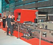 Чрезвычайно интересный экспонат — анонсированная на Labelexpo-2009 полностью сервоприводная флексомашина Synchroline (ширина печати 530 мм) от Lombardi Converting Machinery. Сфера использования — высококачественная печать на широком спектре гибких материалов толщиной 12–350 мкм. В комплектации — валы охлаждения полотна, системы его обработки коронным разрядом, автоматической предварительной приводки, электронного управления продольной и поперечной приводкой, натяжением. Печатные секции смонтированы на центральном основании из особо прочных стальных сварных конструкций толщиной 26 мм, гарантирующих гашение вибраций и высокое качество оттисков. Модули переворота полотна, холодного тиснения фольгой и ламинирования перемещаются по всей длине машины по рельсовым направляющим. Опционально — модули горячего тиснения фольгой и трафаретной печати.