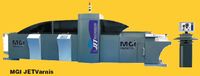 Ответ даёт вторая версия: уже 6 ёмкостей и 3 ролика, установленных в револьверную головку и меняющихся по команде с пульта машины. Дополнительный ролик используется для создания текстуры или нанесения праймера. Праймер пригодится для цифровой печати: благодаря его нанесению на незапечатанную бумагу, оттиски с ЦПМ HP Indigo становятся качественнее: жидкий тонер лучше переносится, закрепляется и удерживается на листе. Так как праймер связывает бумажную пыль, то и срок службы частей печатного механизма увеличивается. Так же отличилась и AquaSEAL 24UV: у неё 2 ёмкости для лака с оперативным переключением между ними. Со струйными устройствами ситуация непростая. Аппараты со схожей технологией должны бы обладать и схожими характеристиками… Komfi заявляет, что её Spotmatic делает только глянцевое покрытие. А вот MGI удивила: её Jet Varnish создаёт, кроме глянцевого типа, ещё суперглянцевое и даже атласное, когда бумаге придаётся эффект сатинирования (по степени гладкости промежуточный между глянцем и матированием). А вот матовый тип в MGI ещё только разрабатывают: обещают, что скоро будет. Отметим, что все эффекты создаются не при помощи различных типов лака, а благодаря самой струйной технологии: программируя изменения объёма капель и алгоритма их нанесения, и получают перечисленные эффекты. А в систему Jet Varnish вместо лака можно залить краску, разумеется, после очистки. Из лакировальной машины она превращается в однокрасочное печатное устройство, пригодное для персонализации тиражей.