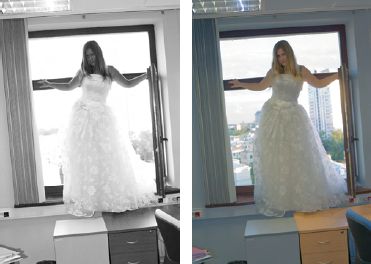 Однажды мы в агентстве устроили импровизированную фотосессию наших очаровательных девчонок в свадебном платье. Ни технику, ни свет никто специально не готовил, поэтому некоторые кадры пришлось потом обрабатывать. По ходу дела и родилась идея однокадрового HDRI.