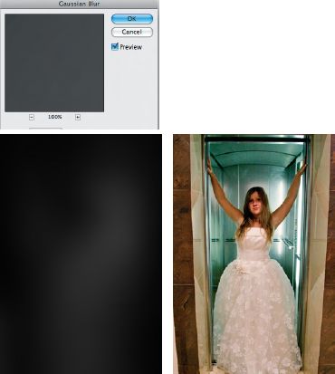 Тёмный вариант переносим в файл со светлым вариантом (удерживая <Shift>). Создаём маску для тёмного слоя и командой Apply Image копируем в неё синий канал тёмного слоя. В отличие от предыдущего примера, чётких, геометрических границ между переэкспонированными и нормальными по освещению областями нет. Поэтому маску следует размыть при помощи фильтра Gaussian Blur с максимальным значением радиуса 250 пикселей.